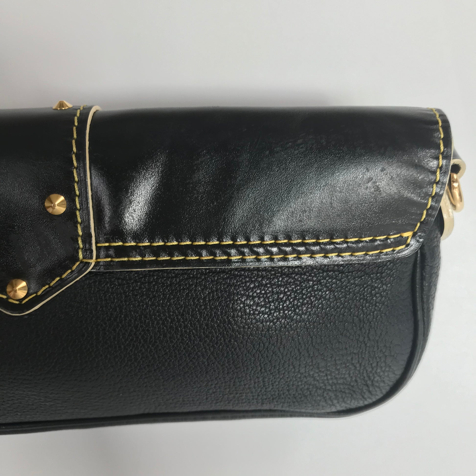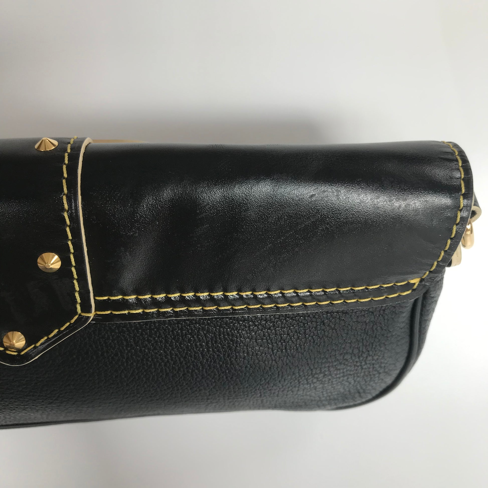- Leather: Mild scratches mainly on back of the bag, with mild stains. Mild creases at bottom. No crack.