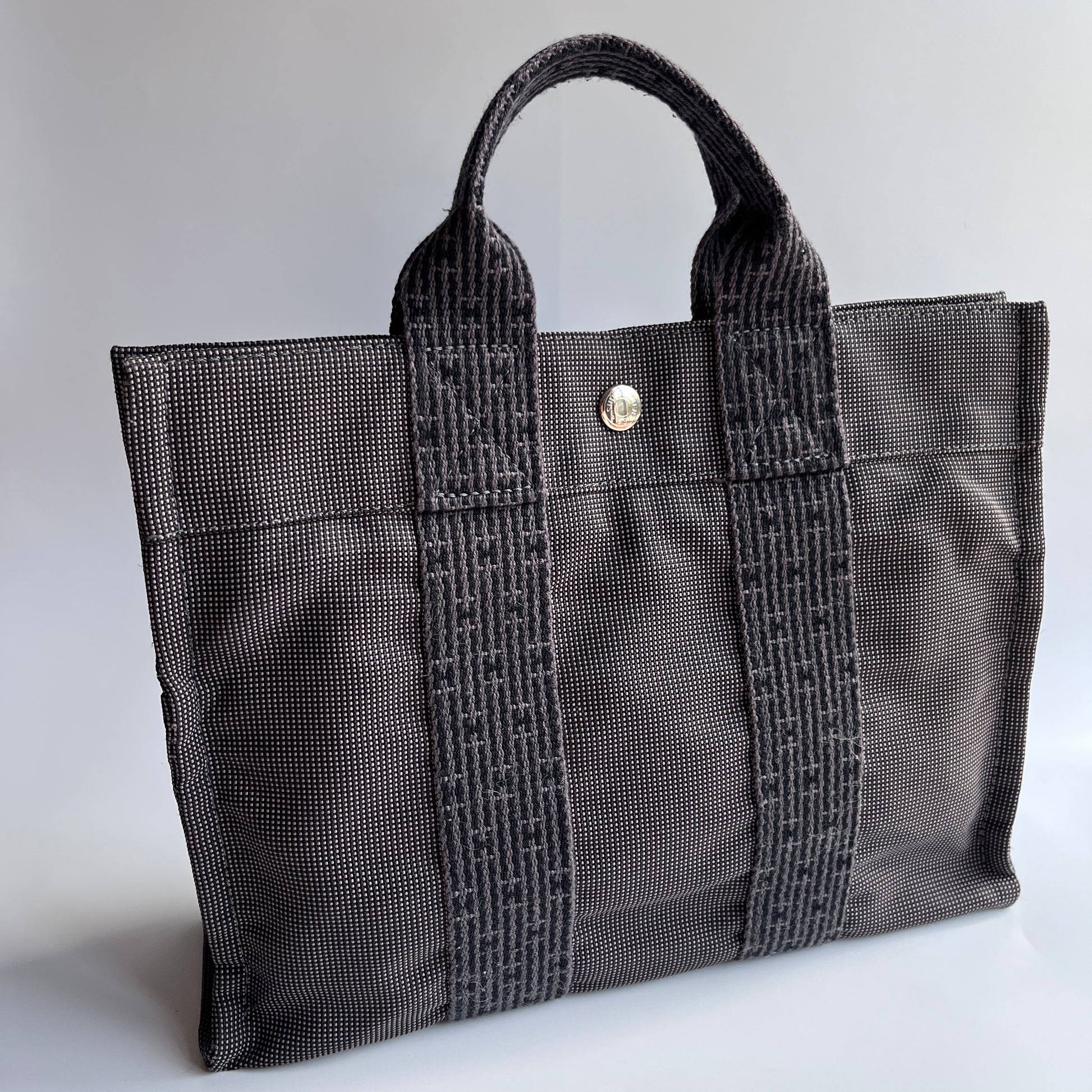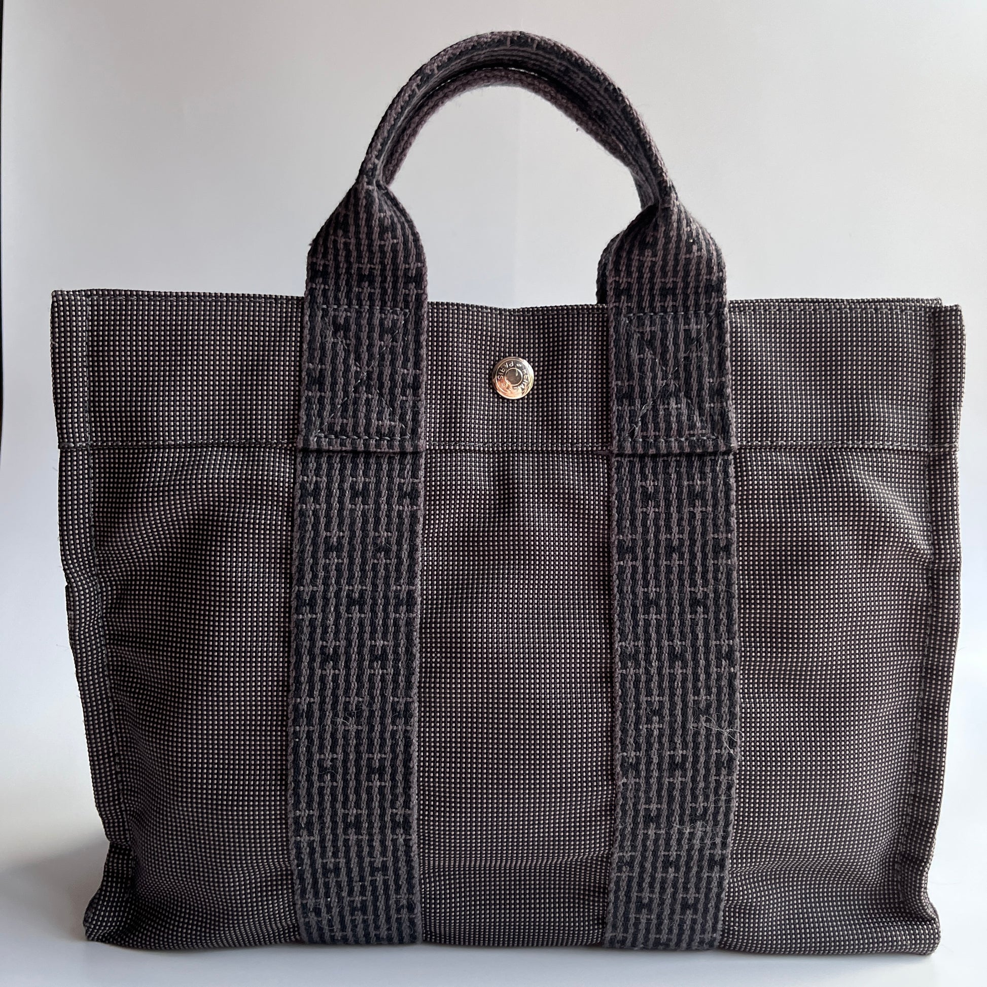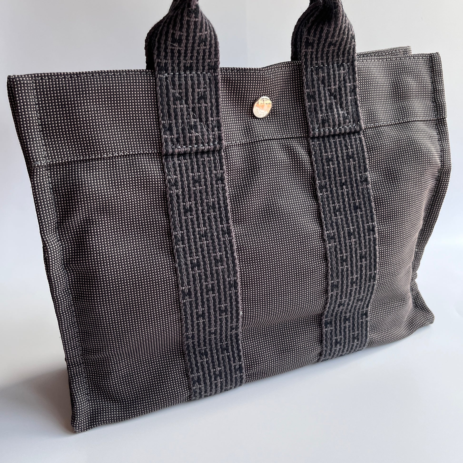 Hermes Herline PM Gray Canvas Tote Bag