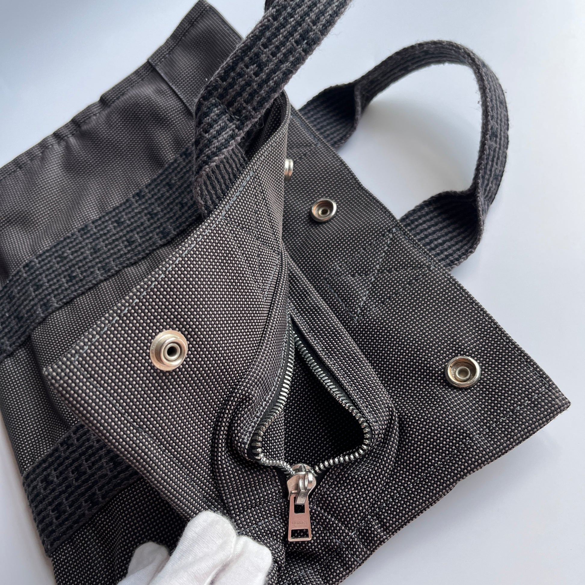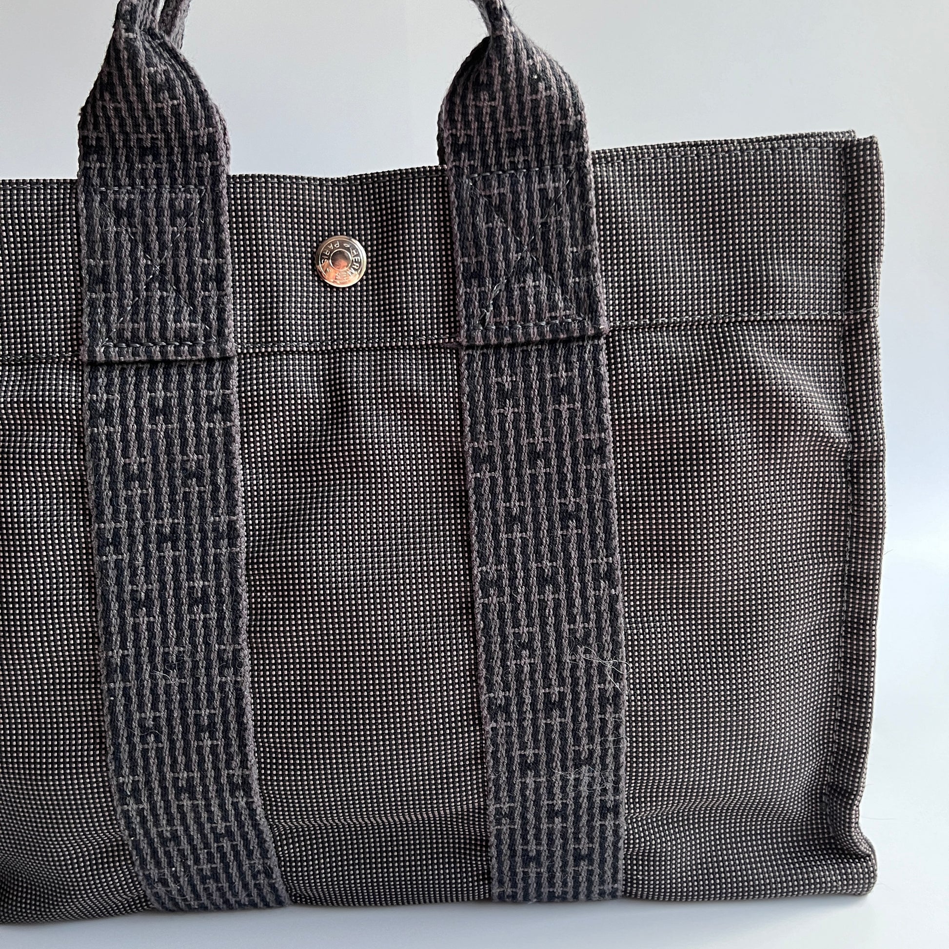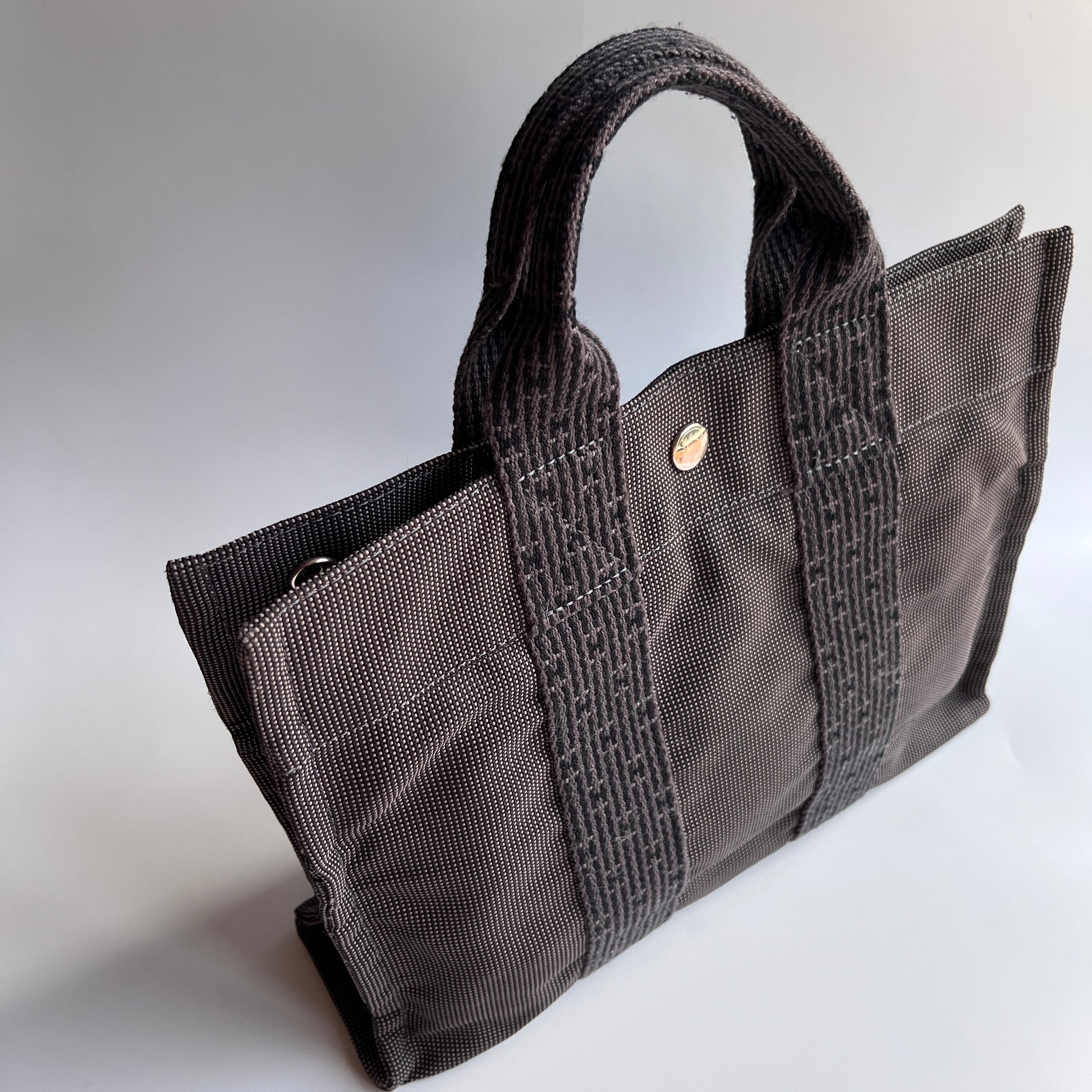 Hermes Herline PM Gray Canvas Tote Bag