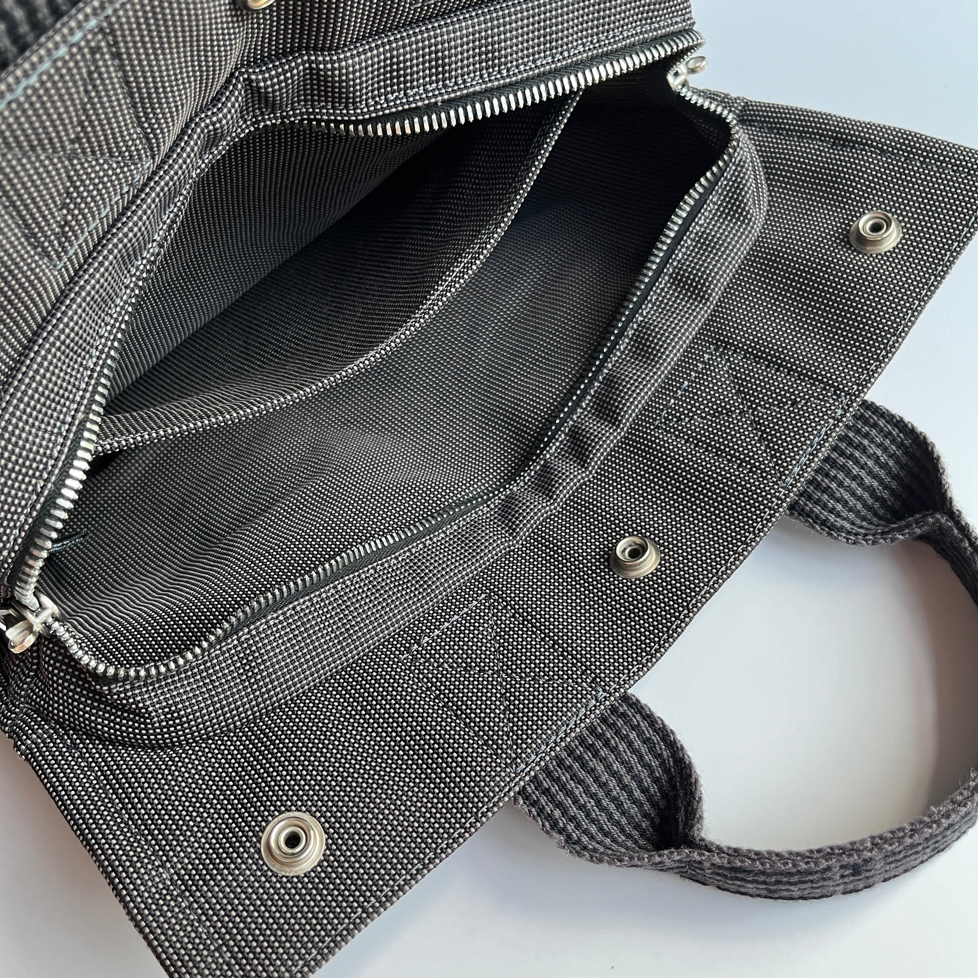 Condition: Very good vintage condition. Very slight signs of use. Mild scratches on hardware and mild fraying on edges of handles. Exterior and interior are clean. No odour.